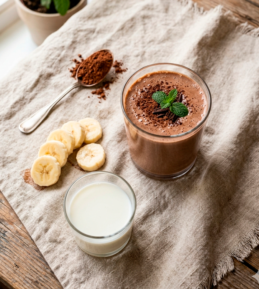 Ніжний смузі з шоколадним відтінком, який подобається і дітям, і дорослим. Простий варіант домашнього десерту.